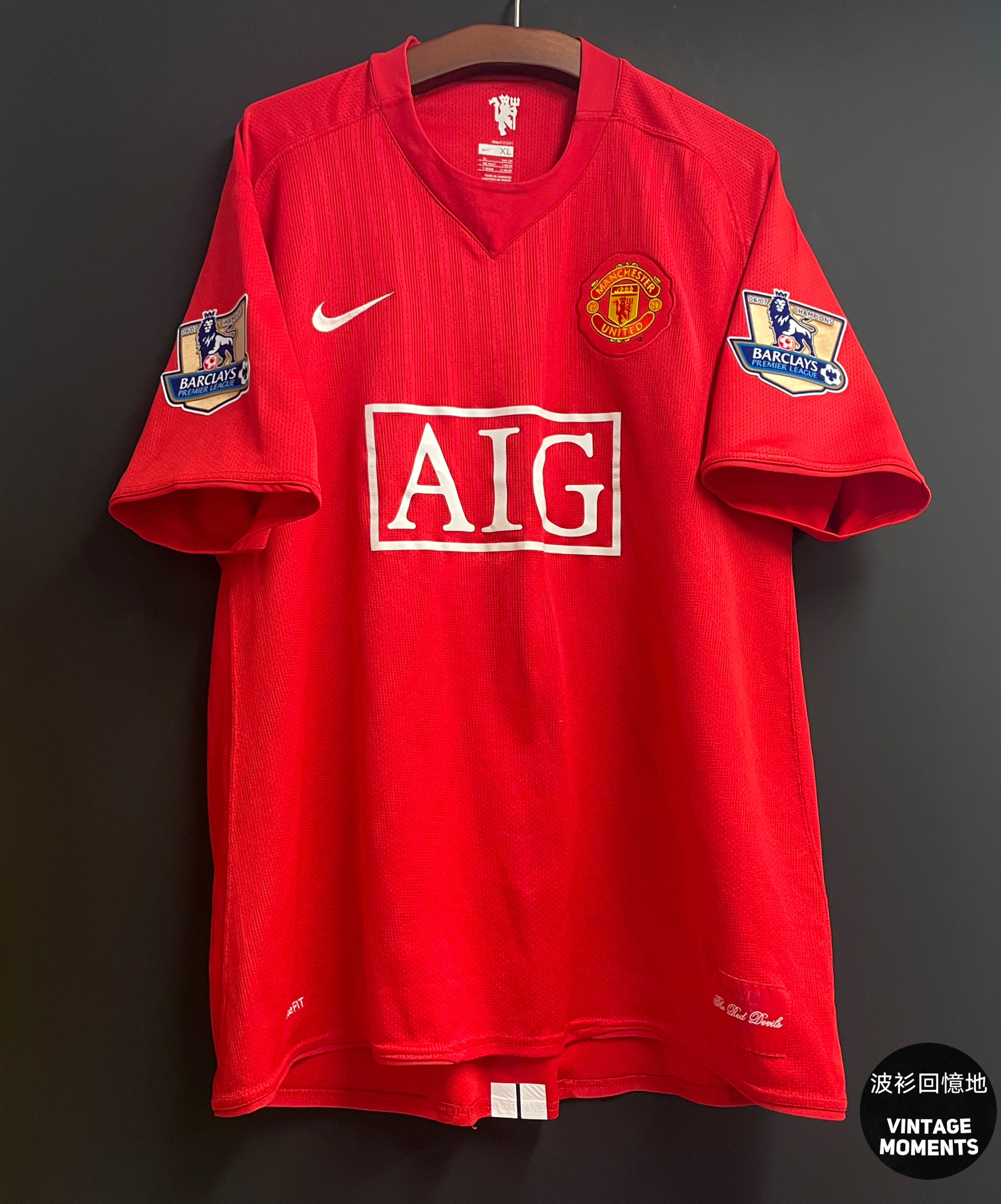 曼聯07/08主場 (貨號:b) SIZE: XL (參考尺碼:長75cm胸闊60cm) 🔸連非原裝絨字章11號 傑斯 🔸衫身狀況良好 🔸沒有明顯毛粒和勾線,印字良好,背後上下尾條重新修復