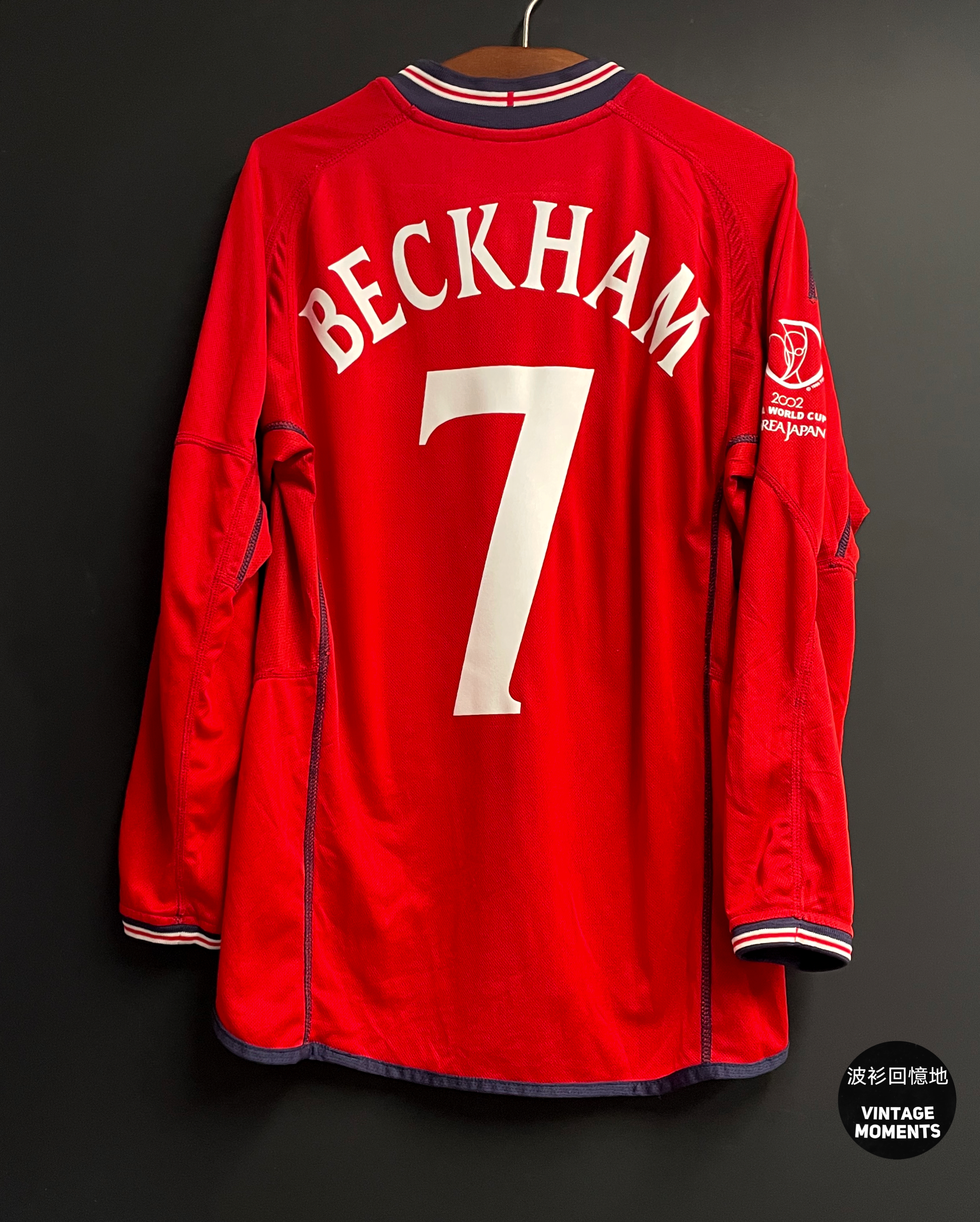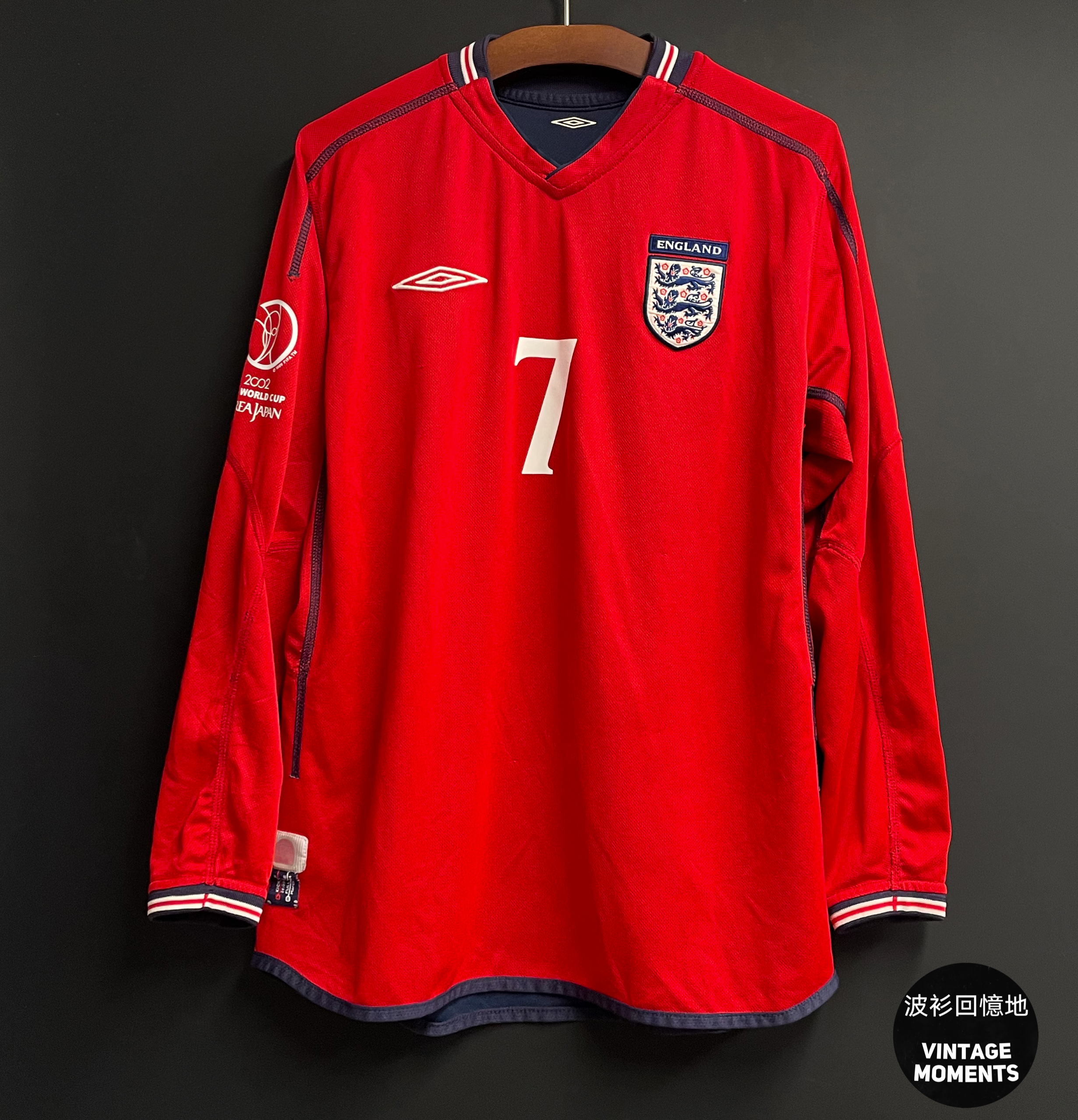 英格蘭2002客場長袖 (貨號) SIZE: M (參考尺碼:長73cm胸闊55cm) 🔸連非原裝絨字章7號 碧咸 🔸衫身狀況良好 🔸沒有明顯毛粒和勾線,印字良好