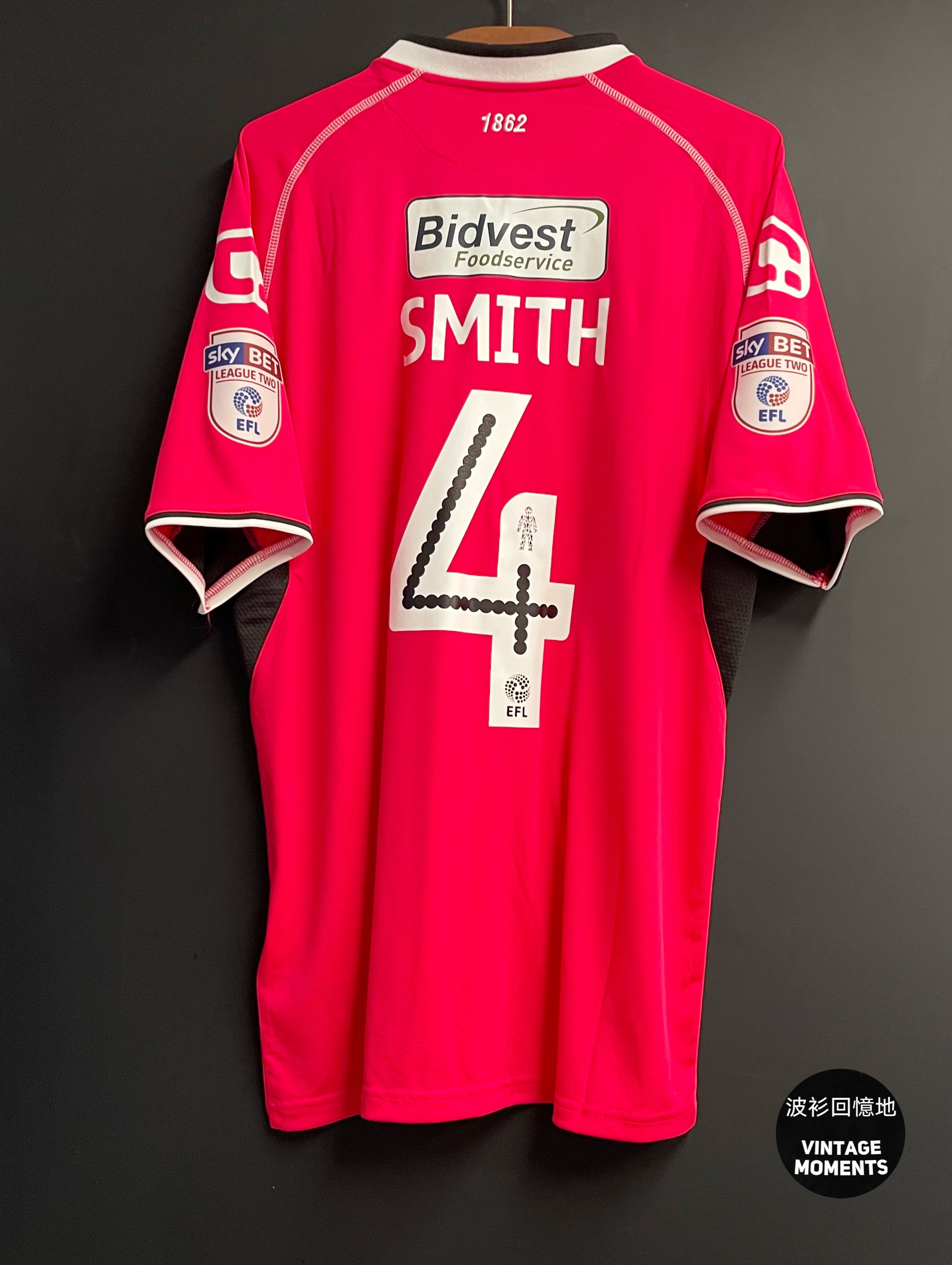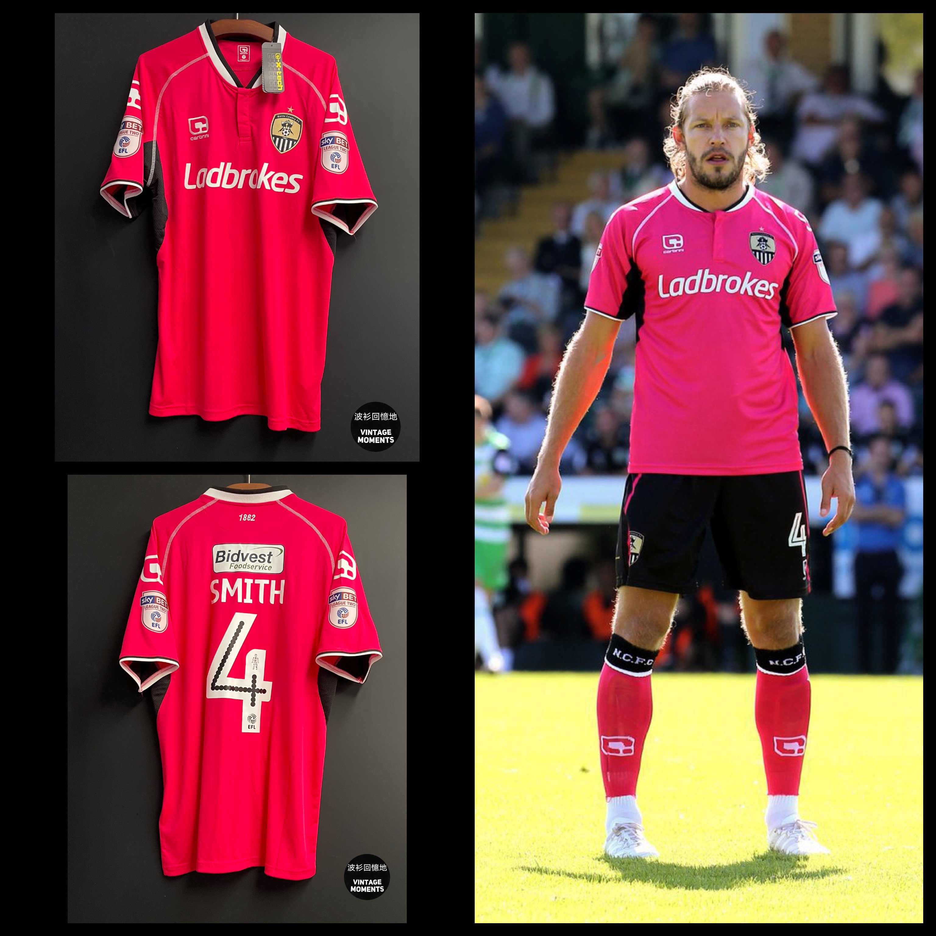 諾士郡16/17客場 (貨號:a438) SIZE: L (長75cm闊56cm) 🔸連非原裝字章4號 阿倫史密夫 🔸全新連牌 🔸沒有明顯毛粒和勾線,印字良好